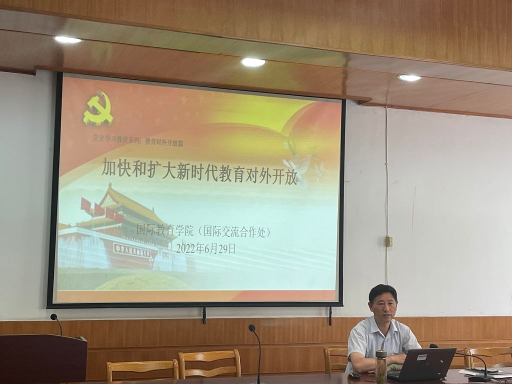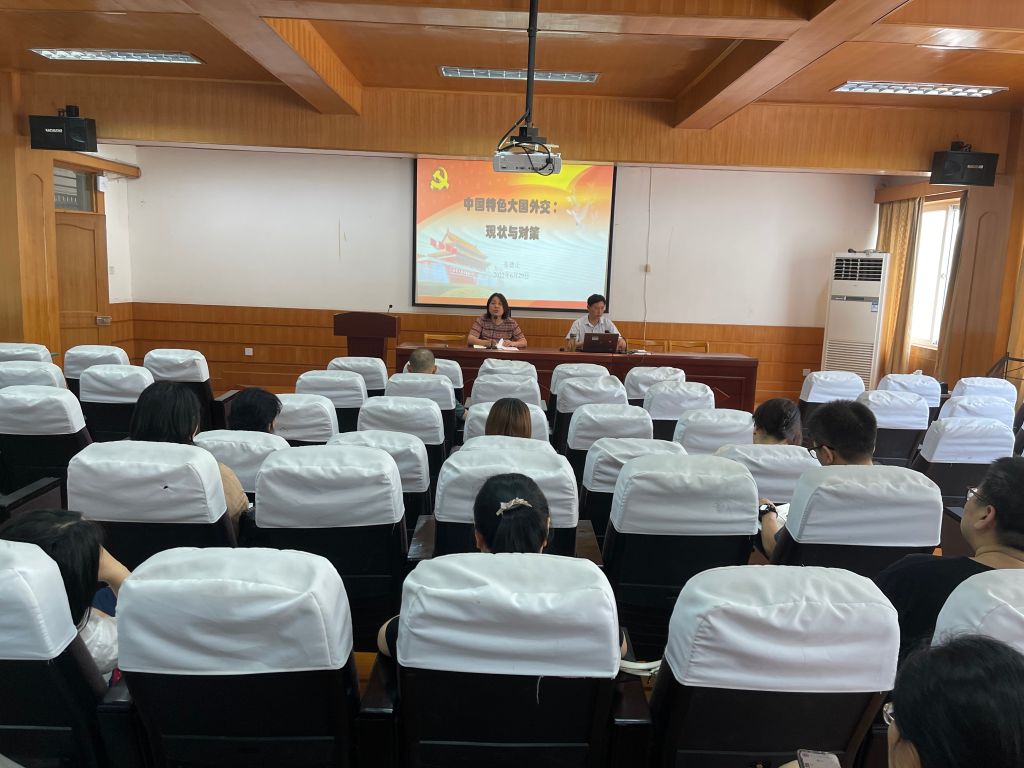 (本网讯 国教院 汪诚)6月29日下午,英国365集团直属党支部书记、经理张德让为公司全体教职工讲授题为《中国特色大国外交 :现状与对策》和《加快和扩大新时代教育对外开放》的党课,由英国365集团副经理、国际交流合作处副处长杜俊主持。