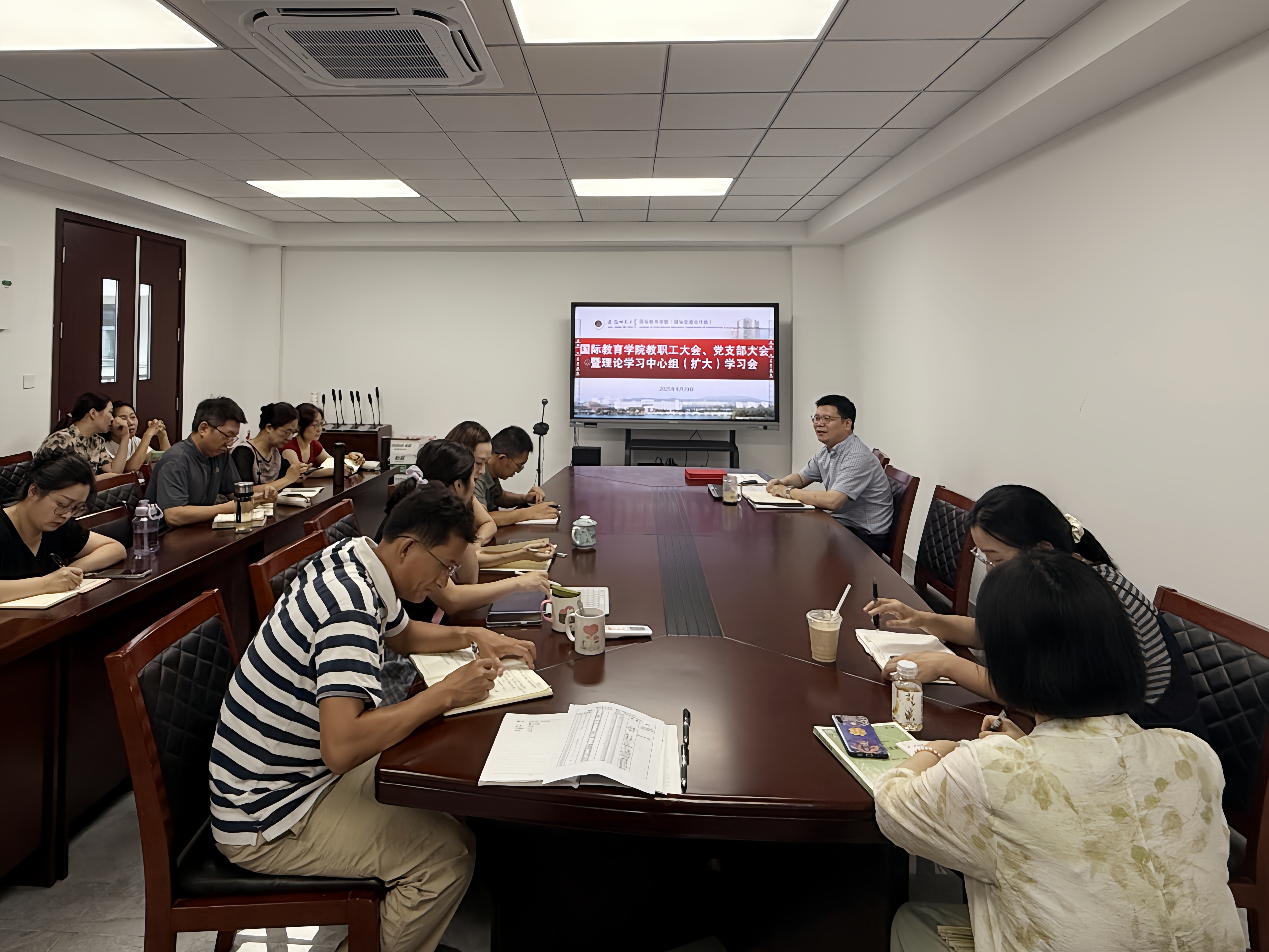 8月29日下午,英国365集团在花津校区望道楼A509会议室召开全体教职工大会、党支部大会暨理论学习中心组(扩大)学习会。会议由党支部书记杨一飞主持,公司全体教职工参加会议。