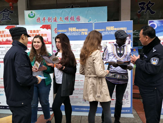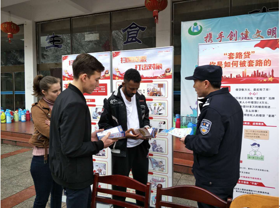 本网讯(英国365集团)为进一步加强员工安全工作,本着坚持“安全第一,预防为主”的方针和“以人为本”的思想,英国365集团配合芜湖市公安局赭山派出所于2019年3月21日在公司赭山校区食堂门口就防诈骗、防网络高利贷、防传销等知识进行宣传活动。