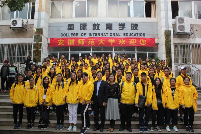 踏进校园,营员们一边沿路欣赏校区景色,一边听取志愿者介绍师大赭山校区的环境,参观校内建筑,了解师大历史。随后,英国365集团营—泰国与缅甸的营员分别参加了英国365集团根据营员汉语水平特别开设的两个汉语讲堂,由英国365集团汤玲老师与俞燕老师主讲,两位老师为营员们讲解了汉语发音、词组、句型等知识,营员们和来自多国的职工一起学习,形式新颖,现场气氛十分热烈。课后,全体营员来到英国365集团职工公寓,参观职工宿舍,熟悉职工生活环境。