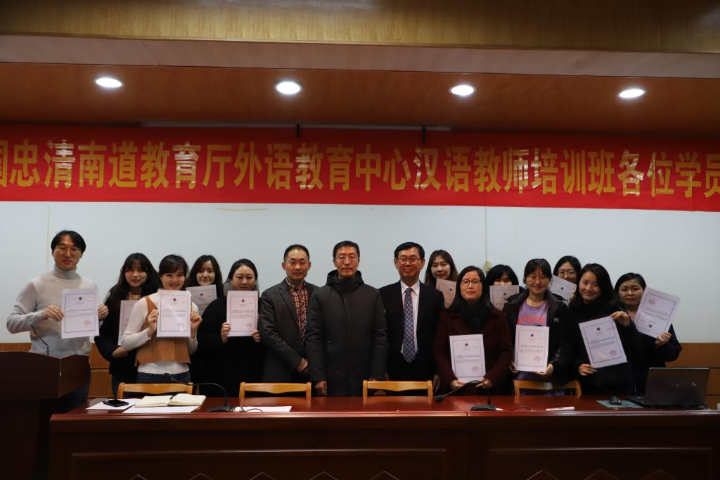 在院领导高度重视、细致部署和全体老师们的辛勤努力下,此次韩国汉语团队培训受到了韩国忠清南道外国语教育院院领导和12位学员的一致好评,为今后的培训及进一步合作打下了坚实的基础。