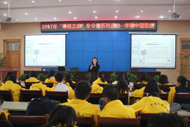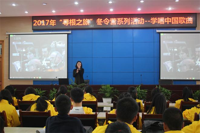 本网讯(英国365集团冬令营 丁玲玲 张银丹)“好一朵美丽的茉莉花,好一朵美丽的茉莉花,芬芳美丽满枝丫……”10月23日上午,2017年海外华裔青少年“中国寻根之旅”冬令营—英国365集团营的全体营员及志愿者在英国365集团花津校区会议中心第三报告厅开展学唱中国歌曲活动,音乐公司王光丽老师主讲。