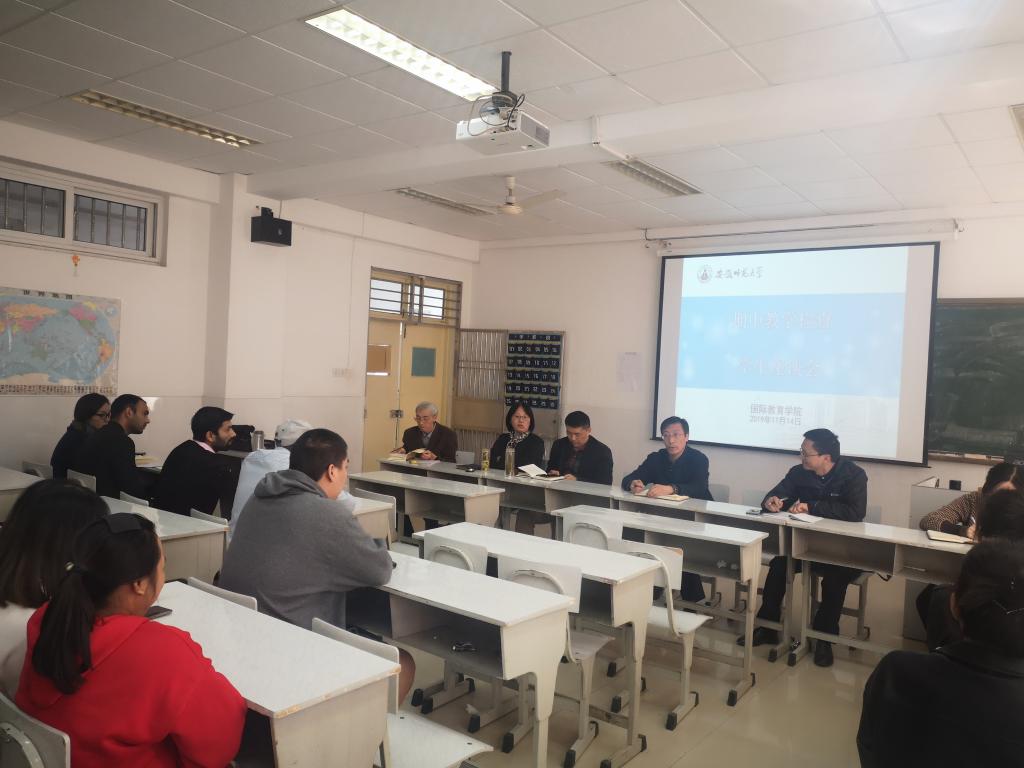 各班员工代表畅所欲言,分享了他们在芜湖的学习和生活情况,并对公司课程安排、教学内容、宿舍公共设施使用等提出了具体意见,初级班的员工希望公司能增加语言实践活动,可以与中国员工结对互助,中级班期待口语、词汇课程中所学的知识,有更多实际应用的机会,而高级班的问题则集中在毕业论文写作指导方面,教学主任许凌虹和教研室黎洪老师现场解答了部分学习疑问,留管办老师就宿舍安全用电和良好生活习惯保持等,对员工们提出了具体要求。