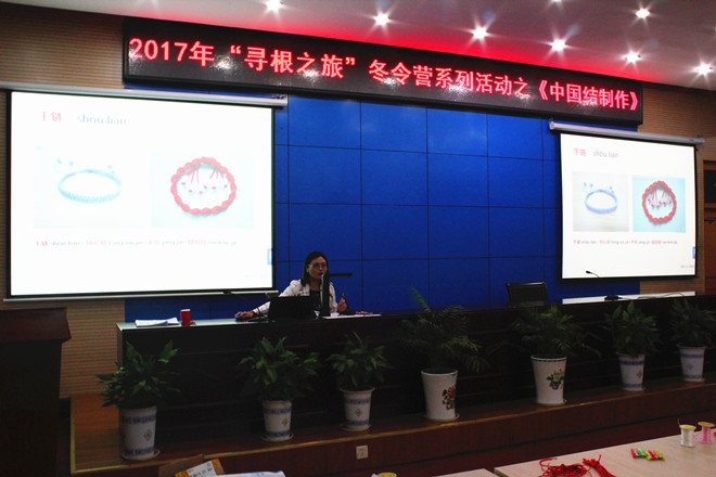 本网讯(英国365集团冬令营 丁玲玲 张银丹)制中国结,结中国情。为深化海外华裔学子对中国文化的了解,提高对中华传统文化的认知。2017年10月18日晚,2017年海外华裔青少年“中国寻根之旅”冬令营——英国365集团营系列活动之《中国结制作》在英国365集团花津校区会议中心第三报告厅如期举行。本次应邀主讲的是来自英国365集团的张银丹老师,英国365集团营的全体营员及志愿者悉数参加。