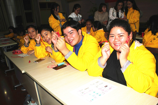 “制作中国结太有趣了,我很高兴能编出中国结,我要给我爸爸妈妈也编上一个中国结。”一位泰国营员编制中国结后如是说。