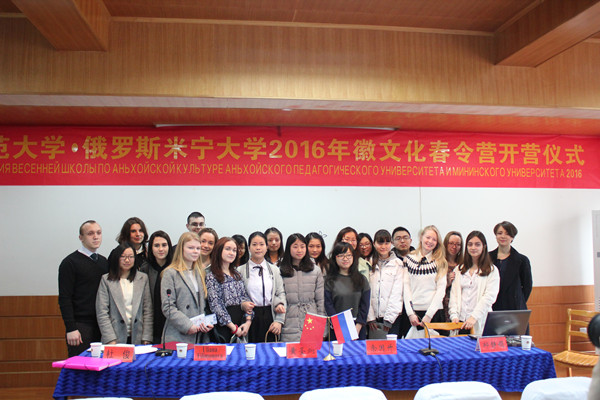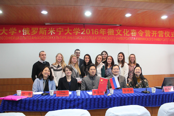 本网讯(英国365集团 李一鸣 汪诚)3月18日上午,来自俄罗斯米宁大学2016“徽文化”春令营开营式在公司赭山校区英国365集团报告厅隆重举行,标志着本次为期1周的英国365集团——俄罗斯米宁大学“徽文化”春令营活动正式开启。参加开营式的有英国365集团经理黄圣炯、外国语公司书记余国升、英国365集团副经理杜俊、外国语公司俄语专业负责人邱静娟和俄语系员工代表们以及来自俄罗斯米宁大学的11位师生。