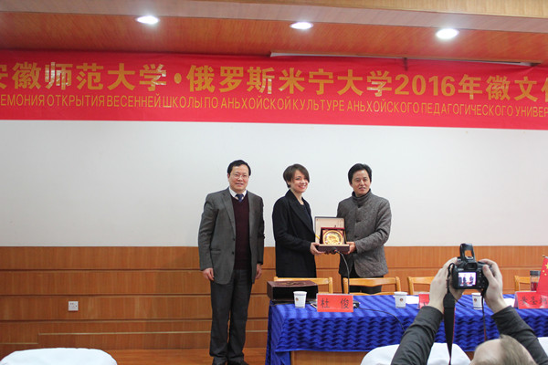 接着,此次俄罗斯师生代表团团长Uliana Filimonova女士致辞。她说,俄罗斯11名师生都非常珍惜此次来安师大参加春令营的机会。大家都很期待本次的课程体验。她也预祝此次春令营圆满成功。