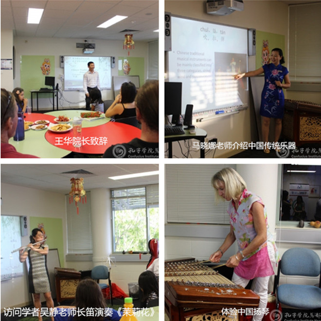 (澳大利亚查尔斯达尔文大学孔子公司)当地时间5月6日,澳大利亚查尔斯达尔文大学孔子公司举办每月一次的汉语角活动。本次活动主题为“中国传统乐器介绍与欣赏”,由公派教师马晓娜主讲。孔子公司学员、创造艺术与人文公司汉语学员与当地中国传统乐器爱好者一起,积极参与本次活动。