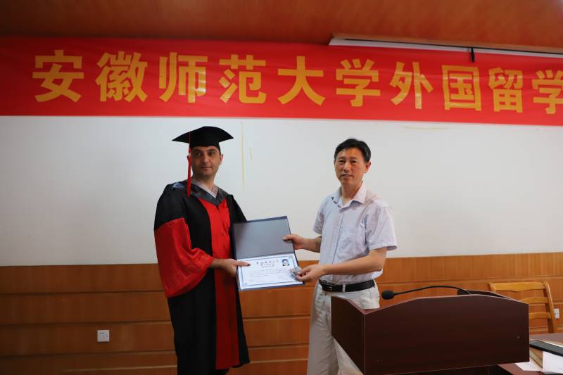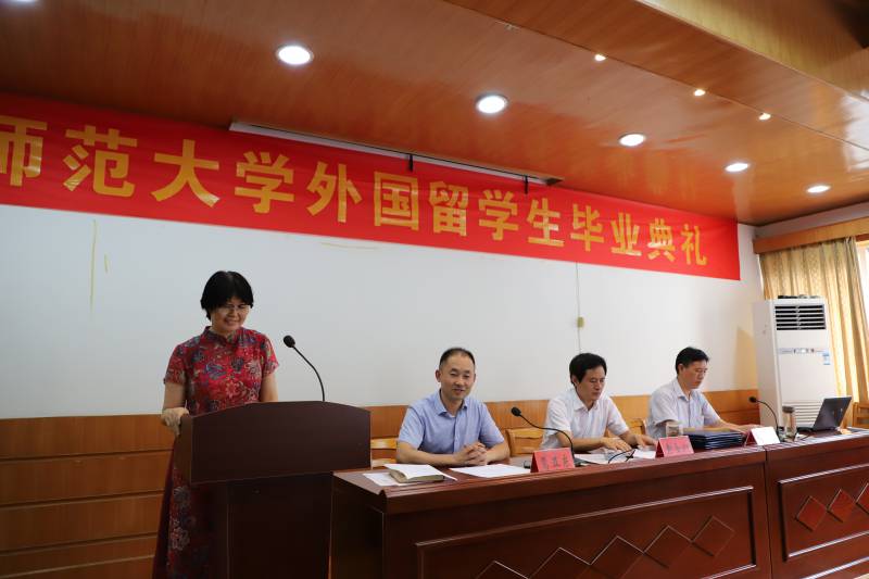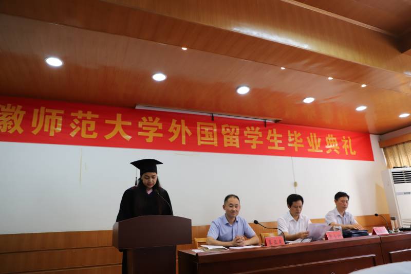 来自马达加斯加的职工孙波作为毕业生代表发言。他用流利的汉语回忆了自己在安师大的学习生活,表达了不断进步的喜悦之情,感谢老师们的辛勤教学与指导,并对同学们表达了诚挚的祝福。