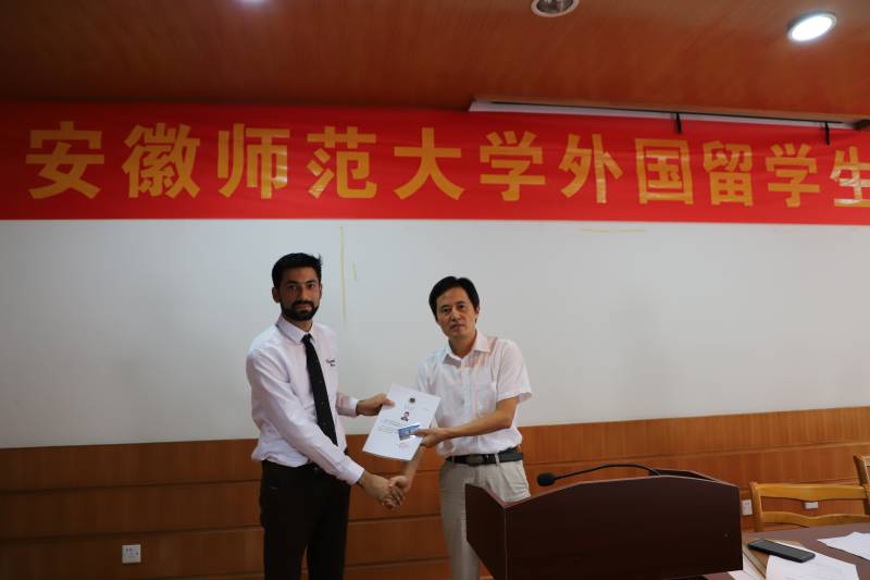教师代表荆莉感谢疫情期间留校外国职工们对中国政府和安师大的信任,带领同学们一起回忆了在安师大学习的点点滴滴,充分肯定了外国职工们积极的学习态度和丰富的学习成果,向即将离开安师大的同学们表达了不舍和祝福。