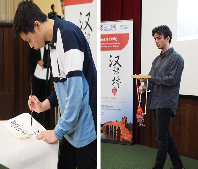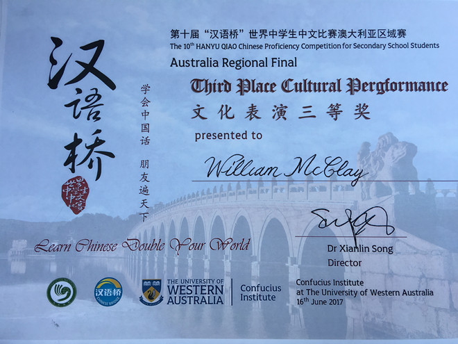 本次比赛是查尔斯·达尔文大学孔子公司第一次组队参加,经过近一个月的紧张准备,代表北领地的两名选手与来自南澳地区、西澳地区以及首都地区的优秀选手同台竞技。本次汉语桥比赛分为中国国情知识竞赛、中文主题演讲和文化表演三个部分,在中文主题演讲环节,选手们以“学会中国话,朋友遍天下”为主题分别讲述了自己学习中文与中国文化的生动故事;在文化表演比赛环节,有的选手唱中文歌,有的跳古典舞,有的演奏中国乐器,有的展示中国书法,还有人玩起了魔术,真可谓各显神通,精彩纷呈。经过紧张的比赛和激烈的角逐,最终,来自西澳Methodist女子公司的Kylee Kotula获得总分第一,她将与澳大利亚其他区域赛胜出的选手代表澳大利亚前往中国云南参加第十届世界中员工汉语桥总决赛。来自达尔文高中的William Mcclay也不负众望,获得了中文主题演讲比赛第一名,中华文化表演第三名的优异成绩。