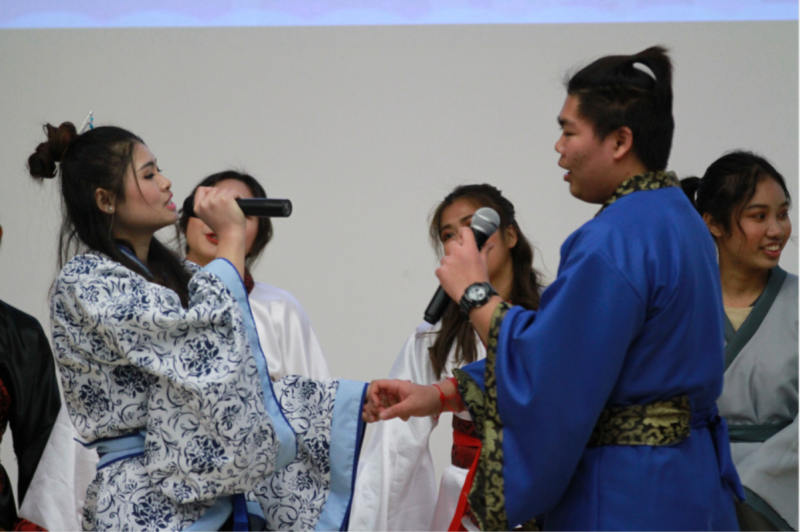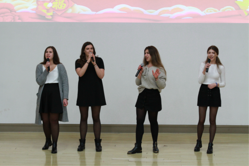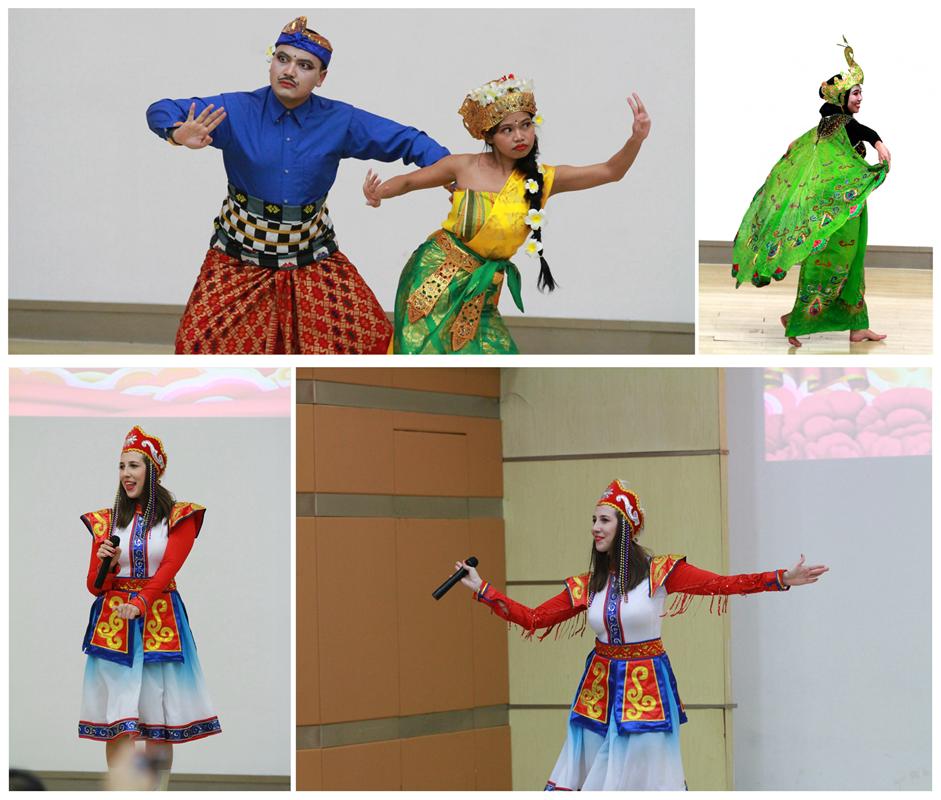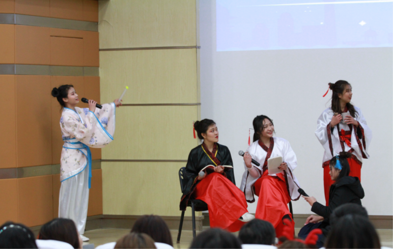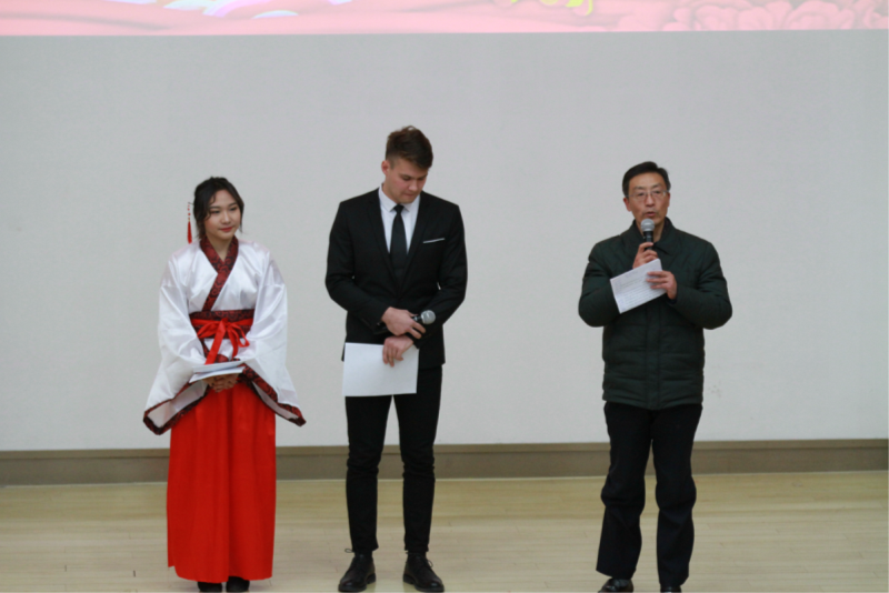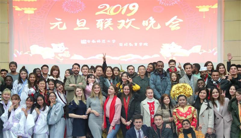 首先,副经理、正处级组织员刘东合向全体师生致新年贺词,他祝全体教师工作顺利,阖家幸福,祝全体职工学习进步,成为推广中国文化的大使。伴随着俄罗斯姑娘卡瑞纳、万芮娅、艾琳、李娜带来的歌曲《随他吧》,晚会拉开帷幕。她们分别用英文、俄文、中文演唱,表达了对新年的期待。来自印度尼西亚的杜鹃、林家兴、周婷、陶勇谌、哈妮同学盛装表演了印尼传统舞蹈,肢体动作与面部表情十分生动,感染力十足。高迈和林家兴同学的吉他伴唱《童话&rude》,邓均同学演唱的歌曲《约定》温暖与动感兼具,展现了多才多艺的一面。阮氏春等中级B班的同学创意十足,精心制作了师大风景视频,分三个单元展示了日常、中国传统、各国传统服饰,表演者活力十足,现场欢呼声频频。瑞娜、玛雅、秀英、卡西娅、浩天同学演唱的歌曲《last Chrismars》温馨轻快,俄罗斯姑娘马俐一曲《套马杆》神韵出彩,获得观众掌声阵阵。来自喀麦隆的沈梦同学,一曲《九儿》,开口便获得一片惊呼声,字正腔圆,唱法纯正,不禁让大家感叹她的学习能力。来自苏丹的阿文同学朗诵了中国经典古诗《将进酒》,慷慨激昂,独有风骨;刘丽娟同学则朗诵了中国经典现代诗歌《你是人间四月天》,吐字清晰,温情脉脉。来自多哥的爱美丽同学,来自韩国的李效周、李周恩、郑潇梨同学,来自巴基斯坦的门杰、费尔、姆哈曼等同学分别为观众呈现了自己国家的特色舞蹈,给观众一场视觉盛宴。温美玲等泰国同学自编自导了一出喜剧小品《灰姑娘》,创意十足,台下纷纷爆发出笑声,将晚会气氛推向高潮。更值得一提的是,来自日本的外教老师伴自弹自唱了两首日本著名歌谣,歌声悠扬具有穿透力,让人久久回味。随着节目的进行,穿插在其中的抽奖环节,更是让员工们紧张期待,精彩纷呈。最后在大家的笑声和欢呼声中,元旦联欢晚会圆满结束。