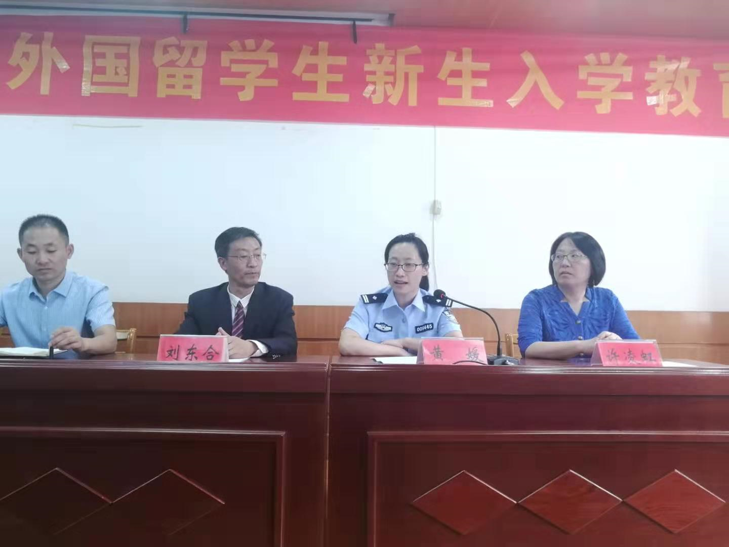 芜湖市公安局出入境管理局警官黄媛为职工新生做签证管理和校外安全教育,她细致地提出了职工在校外生活中需要注意的各项事宜,使新生更加了解中国的法律法规,加强了新生的安全意识和自我防范意识。