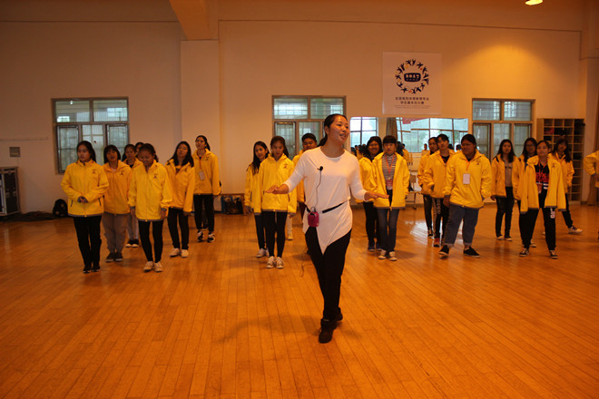 在体验环节中,刘老师采用教娱结合的方式,将本次学习的重点归为互动——体会。营员们被分为10个小组,刘老师着眼于本次课程的目的与营员舞蹈基础水平,带领营员主要学习藏族舞蹈:踢踏舞与汉族舞蹈:东北秧歌手中花。刘老师解析两种舞蹈的基本舞步,尤其是学习舞蹈中的具体方法与注意问题,从起势到结束,一步一手势的指导。营员们学习劲头十足,踊跃参与其中,有的手脚相随,有的注目学习,有的请教提问不断……在营员休息调整期间,刘老师展示了新疆舞与朝鲜舞,动作流畅、灵动优雅,引起了全场的阵阵掌声。