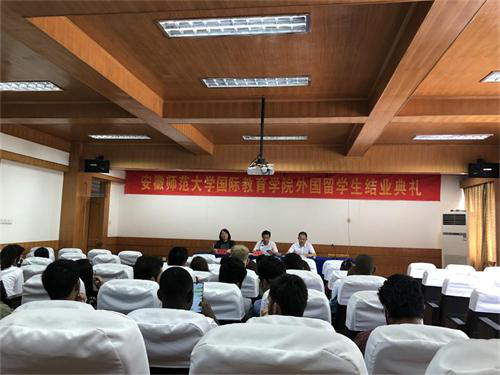 教师代表许迎春带领同学们一起回忆了在安师大学习的点点滴滴,充分肯定了外国职工们积极的学习态度和丰富的学习成果,向即将离开安师大的同学们表达了不舍和祝福。