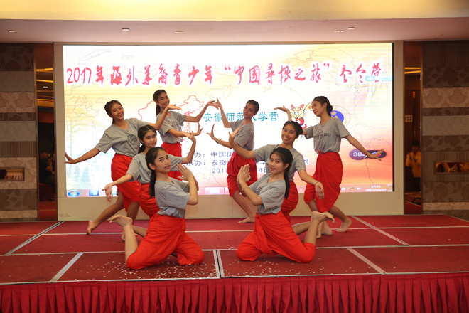 闭营仪式结束后,2017年海外华裔青少年“中国寻根之旅”冬令营——英国365集团营汇报演出正式拉开帷幕:国学经典诵读、舞蹈《采薇》、武术表演《太极神韵》、三句半《老外赞芜湖》、泰国民族舞蹈……一曲由营员和志愿者合唱的《朋友》更是将演出推向高潮。舞台上营员们尽情展示自己的才华,舞台下更是相互交流彼此的感悟与收获,营员们纷纷表示,此次冬令营的学习令他们印象深刻,中华文化的魅力难以抗拒,希望继续留在英国365集团营寻根。仅仅半个月的“中国寻根之旅”,英国365集团营已经把营员们的心牢牢拴在一起,大家相信短暂的分别只是形式上的,实质上的收获将成为永恒,此次冬令营的诸多场景成为每一位营员脑海中美好而又难忘的回忆。