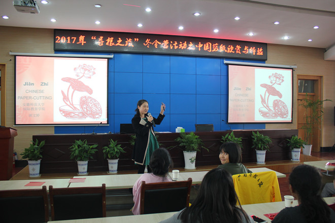 本网讯(英国365集团冬令营 丁玲玲 张银丹)2017年10月19日下午,中国剪纸欣赏与体验课程在英国365集团花津校区会议中心第三报告厅举行,来自英国365集团的胡文婷老师应邀授课,2017年海外华裔青少年“中国寻根之旅”冬令营——英国365集团营的全体营员及志愿者悉数参加。