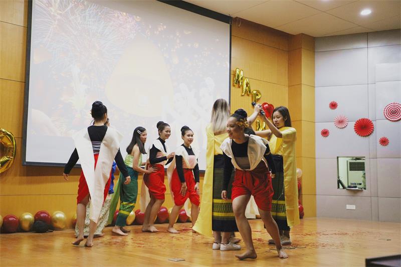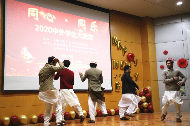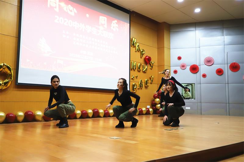 首先,英国365集团正处级组织员刘东合致辞,他总结了过去一年英国365集团在大家的共同努力下取得的成绩,同时祝全体教师2020年工作顺利,阖家幸福;祝全体职工学习进步,努力成为推广中国文化的大使!伴随着热烈的掌声,晚会正式开始。刘旭旺同学演唱的《遥远的她》,曲风悠扬,温柔动听,为晚会拉开了美好的序幕。随后,马俐等来自俄罗斯的姑娘们带来了一段动感的舞蹈《16 shots》,将晚会的氛围推向高潮。来自摩洛哥的拉米娅、来自东帝汶的高迈以及来自印度尼西亚的林家兴,入乡随俗,演唱了中国歌曲《往后余生》、《知否》,字正腔圆,情感充沛,让人们在感叹他们的学习能力的同时,也惊叹于他们不俗的唱功。泰国职工江米粒、苏茹雪等将泰国文化带到舞台,向我们展示了泰国的传统服饰、泰拳、泰国传统的游戏等泰国特色。来自委内瑞拉的瑞雯演唱的《How it was》温情脉脉、婉转动听。来自巴基斯坦的艾曼演唱的巴基斯坦歌曲《Bazi》,以及来自巴基斯坦的小伙子们奥马等带来的巴基斯坦特色舞蹈,展示了丰富的巴基斯坦歌舞文化。柬埔寨小伙叶山演唱的《今生缘》,一开口便引起了大家的欢呼,情感充沛,唱功了得。拉米娅、高迈演唱的《Despacito》,伴随着浩天的吉他伴奏,将晚会推向了另一个高潮。孙科的吉他独奏《天空之城》、情感细腻,让人不禁沉醉于他的音乐之中。刘健恒的尤克里里弹唱《恋爱ING》、汪缜带来的《护花使者》节奏轻快,活跃了现场的气氛。
