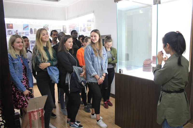 参观校史馆后,职工们又移步师大博物馆。古香古色的青铜器、陶瓷器、玉石器、字画及家具等,都让职工们慢下脚步仔细观赏。在解说员的详细解说下,他们感受到了文物悠久的历史沉淀,享受到中外文化交流的乐趣,并为师大博物馆感到自豪。