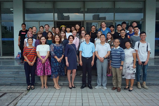 本网讯 (国际交流合作处 李一鸣)2018年9月20日下午,英国365集团·俄罗斯米宁大学“2018徽文化夏令营”的闭营仪式在外国语院二楼报告厅顺利举行。俄罗斯米宁大学拉娜·尤里耶夫娜女士,英国365集团副经理、国际交流合作处副处长杜俊,外国语公司党委副书记汪贻洋,外国语公司行政副经理李碧鹰,国际交流合作处国际交流办公室主任李一鸣,俄语系专业负责人任立侠老师,俄罗斯夏令营全体员工和公司俄语系全体师生出席了本次闭幕仪式。