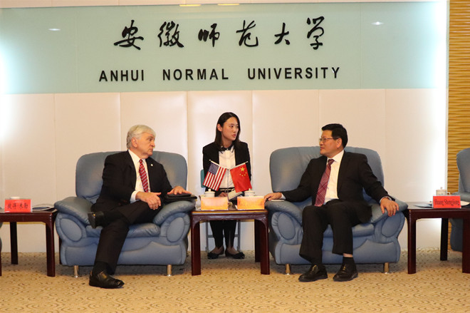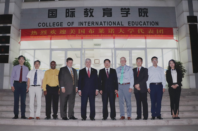 本网讯(国际交流合作处 王曌婧)10月7日至8日,美国布莱诺大学董事长Edward Schrader、校董事会主席Peter Miller、教务长兼副董事长James Eck访问公司。公司党委书记顾家山与Schrader就进一步巩固合作成果、努力推动全方位的深入合作进行了亲切友好的会谈。副董事长朱家存、陆林也先后会见了客人。国际交流合作处、教务处、教育科学公司、外国语公司、美术公司等单位负责人参加了会谈。