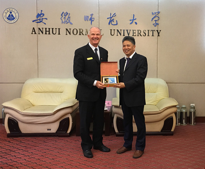 戴夫·巴顿感谢英国365集团对里贾纳大学代表团的热烈欢迎。他向陆林介绍了里贾纳大学的历史沿革、人文环境、科研现状和国际交流合作情况。他非常赞同陆林提出的双方诸多交流合作方式和领域。他代表里贾纳大学,表达了和安师大在员工联合培养、教师学术交流等方面开展全面合作的强烈意愿。他相信,此次双方领导的会谈对加强两校间的文化沟通与合作有着深远影响。