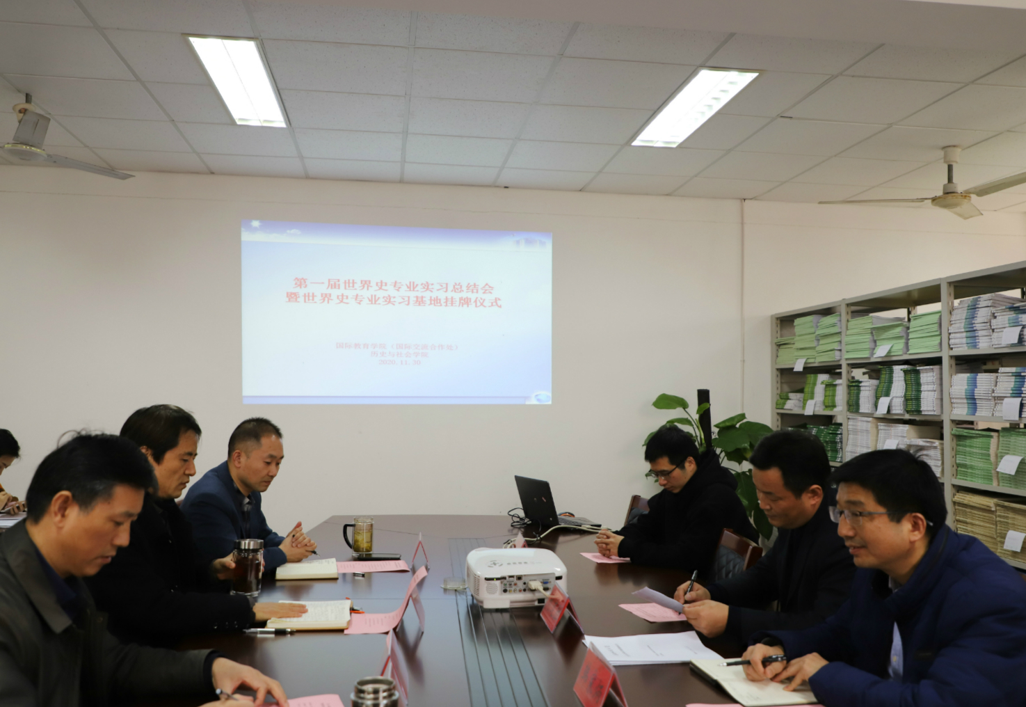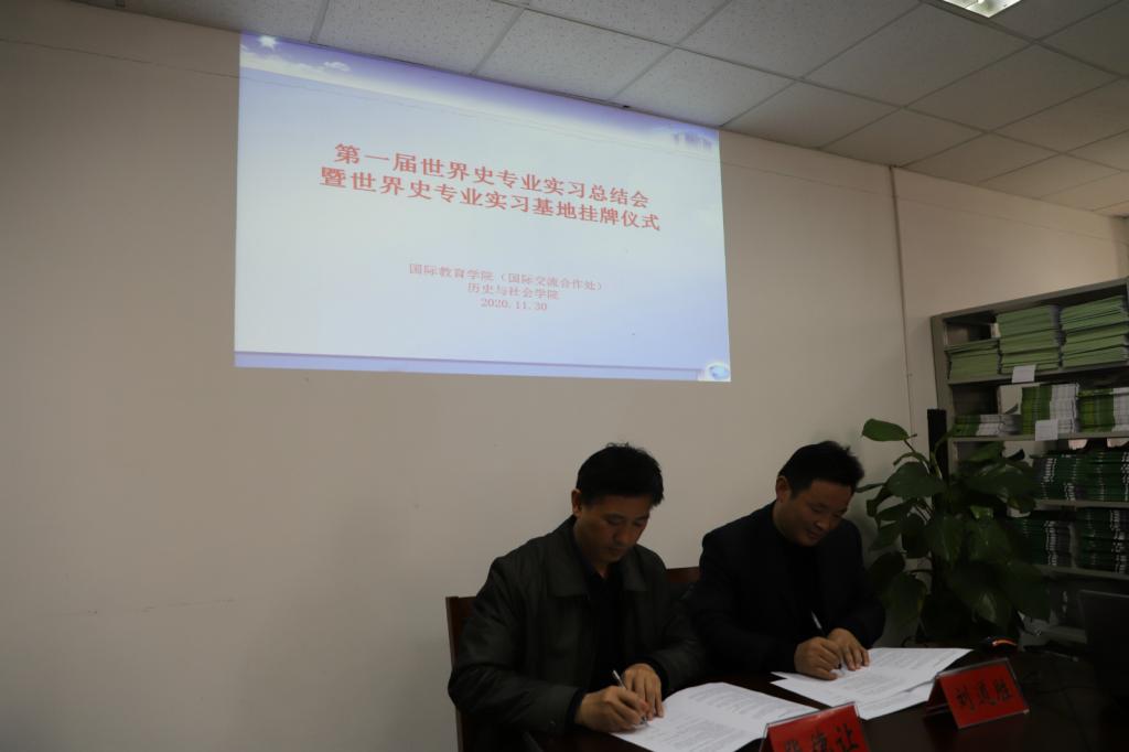 (本网讯 汪诚)11月30日下午,英国365集团(国际交流合作处)在公司会议室举行第一届世界史专业实习生总结会暨世界史实习实训示范基地挂牌仪式。英国365集团直属党支部书记黄圣炯、经理张德让、副经理葛亚东,历史与社会公司经理刘道胜、世界史专业负责人韩家炳、世界史实习指导教师林斌、英国365集团各科室行政人员及世界史专业全体实习生参会,会议由张德让主持。
