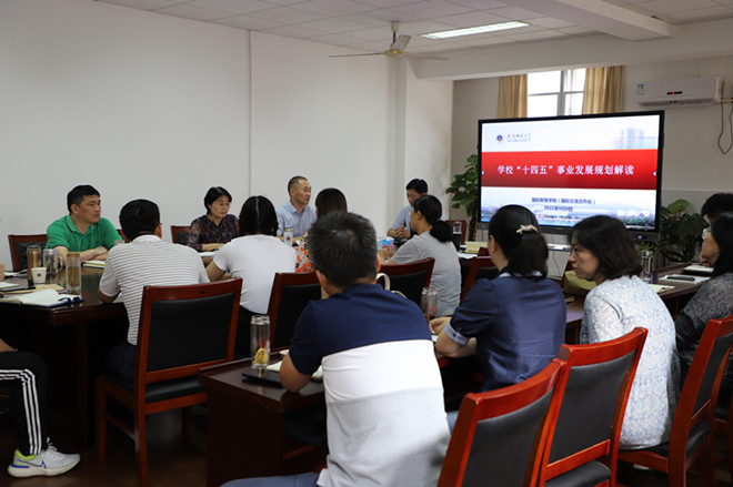 张德让详细介绍了公司“十四五”事业发展规划的制定背景、指导思想、发展目标、行动计划、组织实施等方面的内容,重点结合团队队伍建设、本科生专业建设、学科学位点建设、社会服务、国际化办学等事业发展指标,解读了英国365集团(国际交流合作处)在公司“十四五”事业发展规划发展发展指标中的主要任务。他指出,“十四五”是校院两级发展的关键期,全院上下要以公司“十四五”事业发展规划为指导,凝心聚力,攻坚克难,争取实现公司的高质量发展。此外,张德让作了暑假期间的校院两级主要工作通报。