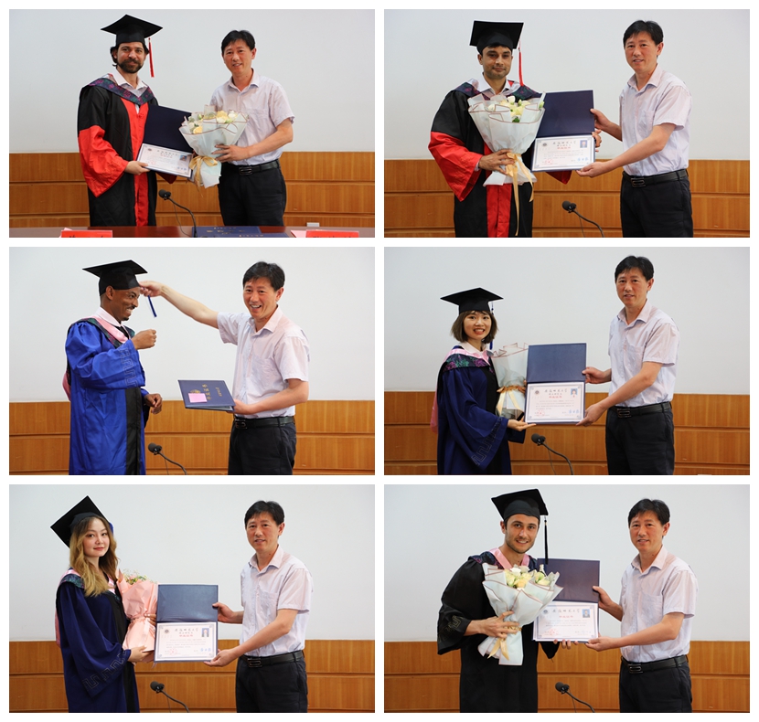 英国365集团经理张德让在致辞中首先向在校的6名自新冠肺炎疫情以来一直未离开中国的毕业生表示祝贺,也向在境外坚持线上学习完成学业的毕结业生表示祝贺。张德让希望境内外职工将中国近年来的飞速发展和公司组织的“感知芜湖”“走进非遗”等活动见闻告诉他们的家人和朋友,让世界上更多的人了解中国,了解英国365集团,为中外友好交流做出贡献,成为宣传中国、传播中国文化的友好使者。李源老师代表英国365集团全体教师为毕结业生送上祝福。仪式最后,张德让为6位毕业生拨正流苏并颁发毕业证书。