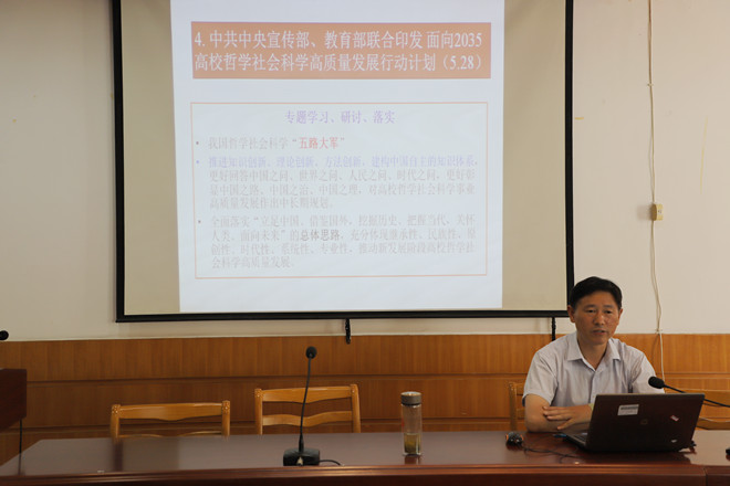 按照公司要求,张德让结合公司特点及工作开展实际,围绕“留学归国人员责任”“中华文明历史研究”“人与自然和谐共生”“2035哲社高质量发展”等关键词,带领全院教职工集中学习了相关会议及文件精神,要求全体教职工要立足公司定位、团队建设及个人发展,切实将相关会议及文件精神与具体工作相结合,认真学习,学以致用。