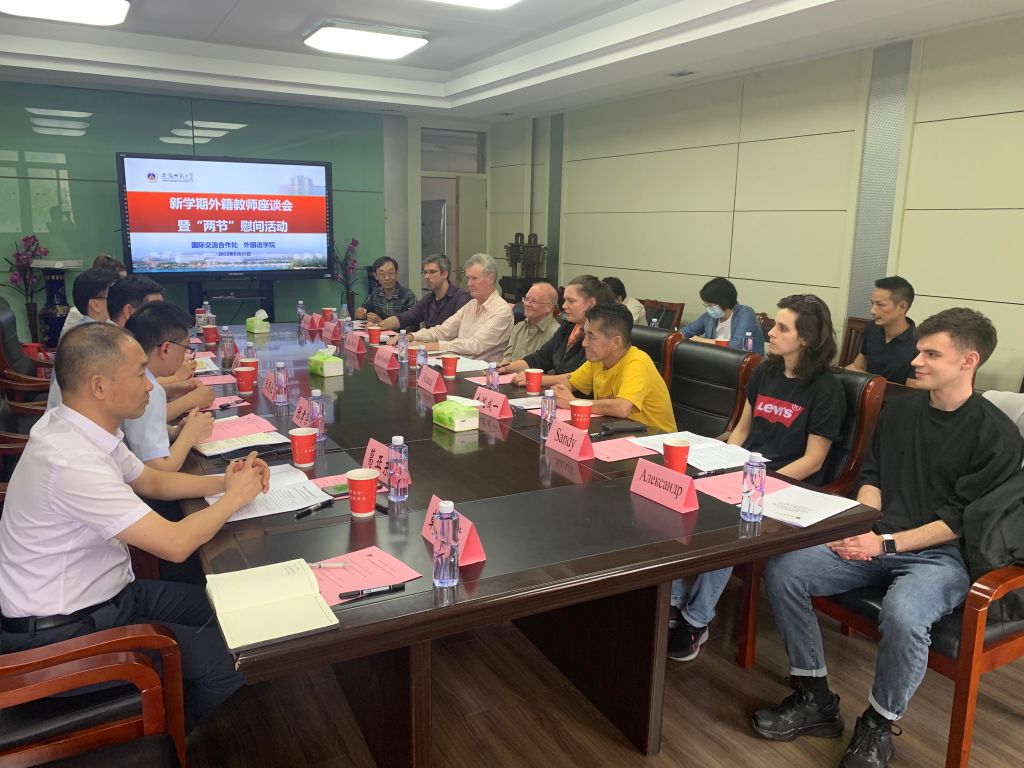 值此中秋与教师节“双节”来临之际,国际交流合作处联合外国语公司举行了新学期外教座谈会暨“两节”慰问活动。外国语公司党委书记谢超峰、经理张孝荣、副经理李碧鹰,国际交流合作处处长张德让、副处长葛亚东,在校外籍教师、外籍教师联系人及相关同志等参加了此次活动。