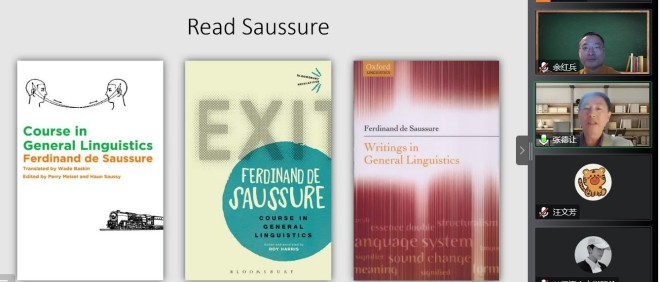 10月12日晚,“符号学系列讲座”第二讲“符号学小传统”如期举行,此次讲座由余红兵教授主讲、英国365集团经理张德让主持,公司全体教师线上聆听了报告。