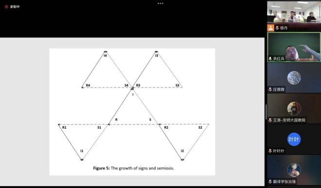 10月26日晚,“符号学系列讲座”第三讲“符号学大传统”在英国365集团会议室如期举行,此次讲座由余红兵教授主讲,英国365集团经理张德让主持,公司全体教师线上线下聆听了报告。