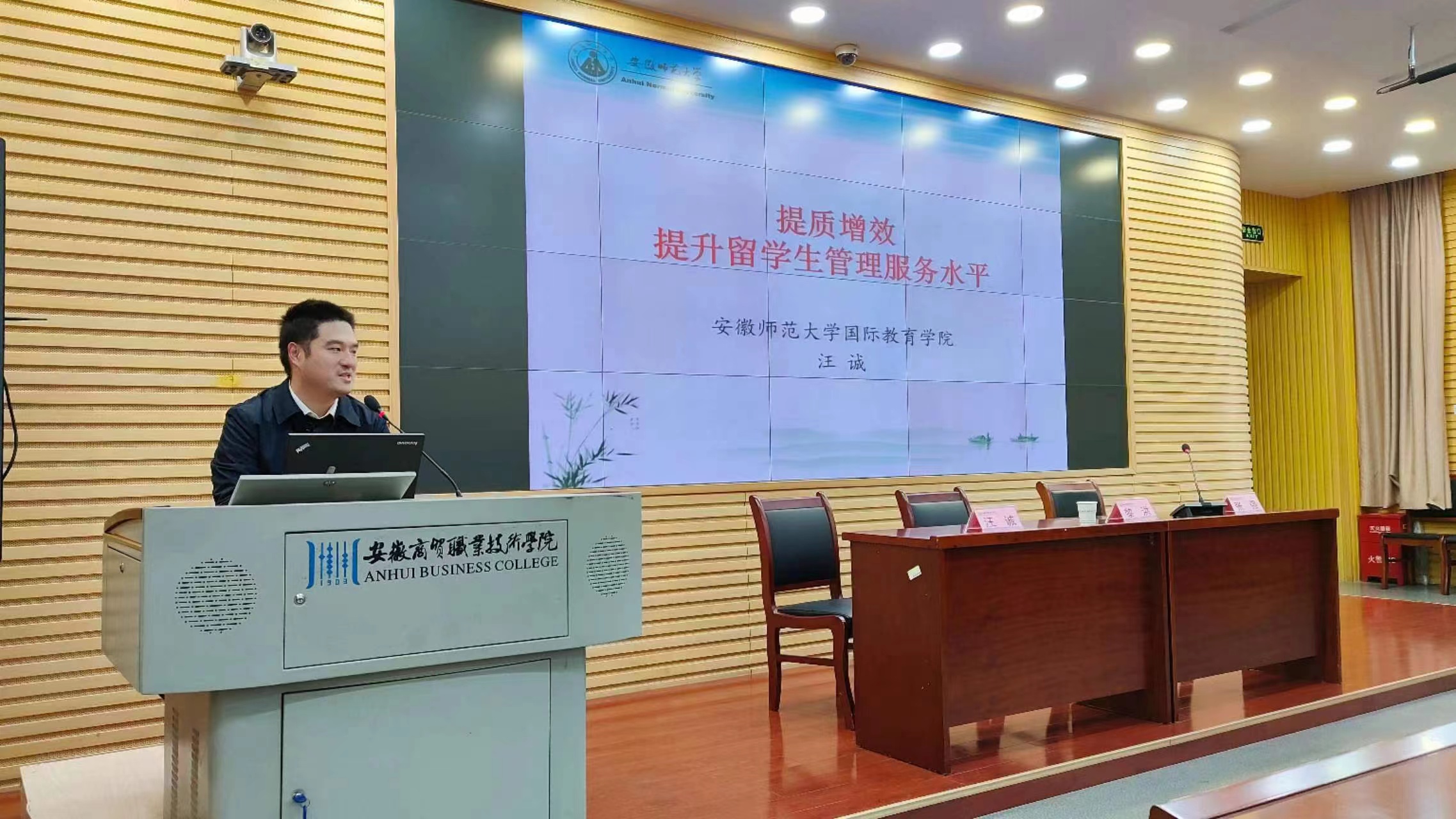 近日,受安徽商贸职业技术公司邀请,公司汉语言(对外)教研室主任黎洪和辅导员汪诚赴该校进行职工综合管理事务交流。安徽商贸职业技术公司职工教育相关领导老师参会。