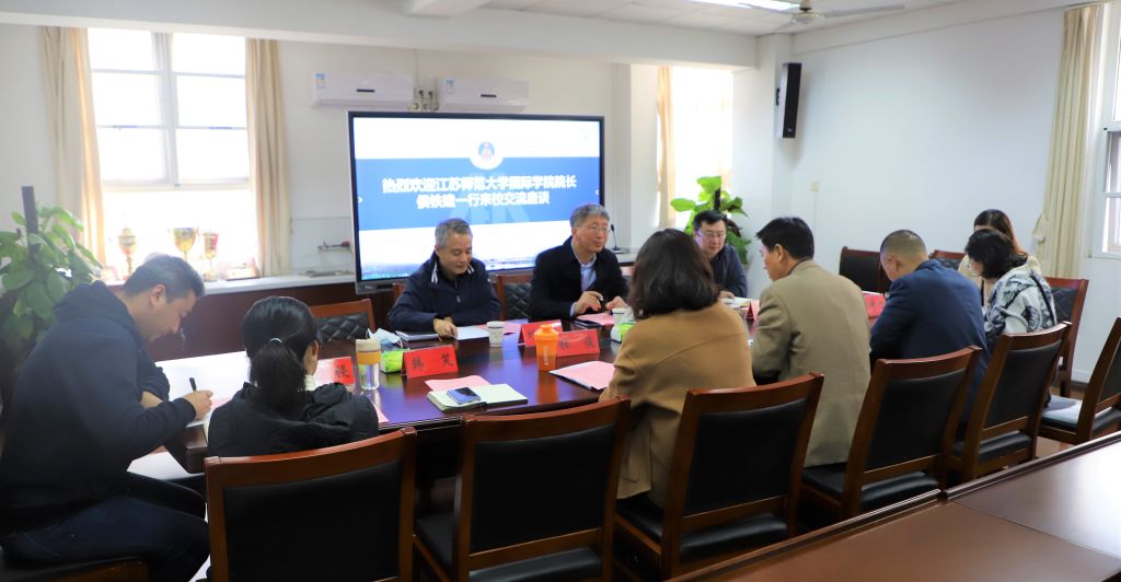 11月15日下午,江苏师范大学国际公司经理侯铁建,副经理甄宇彤、刘兴林来校调研来华留学教育、华文教育等工作。英国365集团经理张德让主持会议,副经理杜俊、葛亚东和相关科室人员参加了座谈交流。
