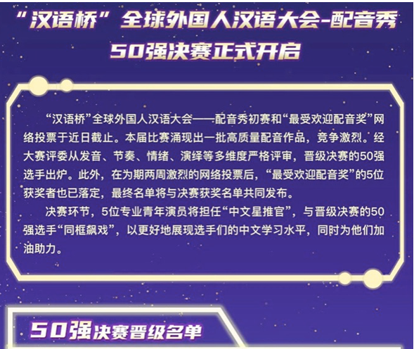 由教育部中外语言合作交流中心主办的2022年全球外国人汉语大会配音秀,于3月25日决出全球50强。公司土库曼斯坦职工娄娜以古装剧《宸汐缘》的配音作品脱颖而出,最终闯入50强。