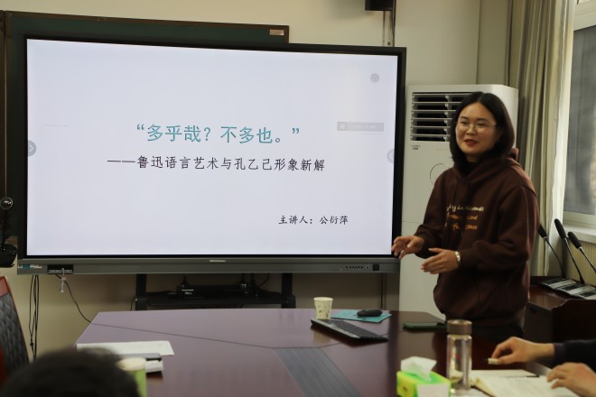 公衍萍的报告主题为“‘多乎哉?不多也。’——鲁迅语言艺术与孔乙己形象新解”,以鲁迅的叙述语言与孔乙己的人物语言为切入点和主题句,解读“孔乙己”形象尴尬的身份处境、自矜迂腐的人物性格、无奈愤世的精神思想等三个层次。在场教师就文学批评语言与语言量化分析问题、英国365集团中国文学课讲授等问题展开相关讨论。