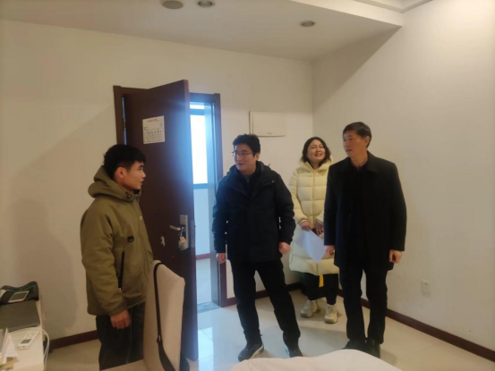 高峰来到职工宿舍,详细询问了在校职工的学习、生活及热水供应情况,对职工的学习和生活给予充分肯定,同时提醒职工做好春节期间的物品储备,鼓励职工多走出宿舍,走进校园,注意劳逸结合,并送上新春的祝福,令留校的外国员工倍感温暖。