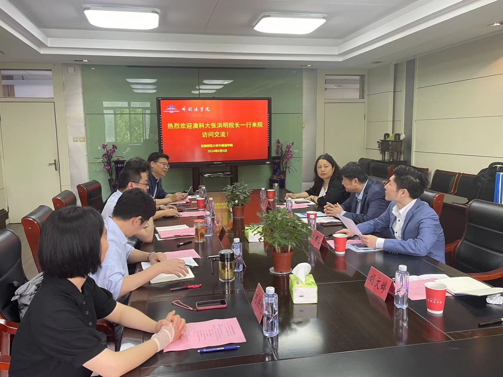 会上杜俊、项念东、张孝荣分别向张洪明经理一行介绍了公司、文公司和外国语公司国际交流的基本情况。张洪明介绍了澳门科技大学国际公司,该院是澳科大九大学院中团队规模第二大的公司,现有英语、西班牙语、葡语,创意写作、国际汉语教育、教育学等专业。此外,公司是语合中心国际汉语教育团队培训的八个基地之一,还承担了全校语文和英语通识课教学。今年八月三年一届的高规格“世界汉语教学学会第十五届国际中文教学研讨会”将由澳科大国际公司承办。