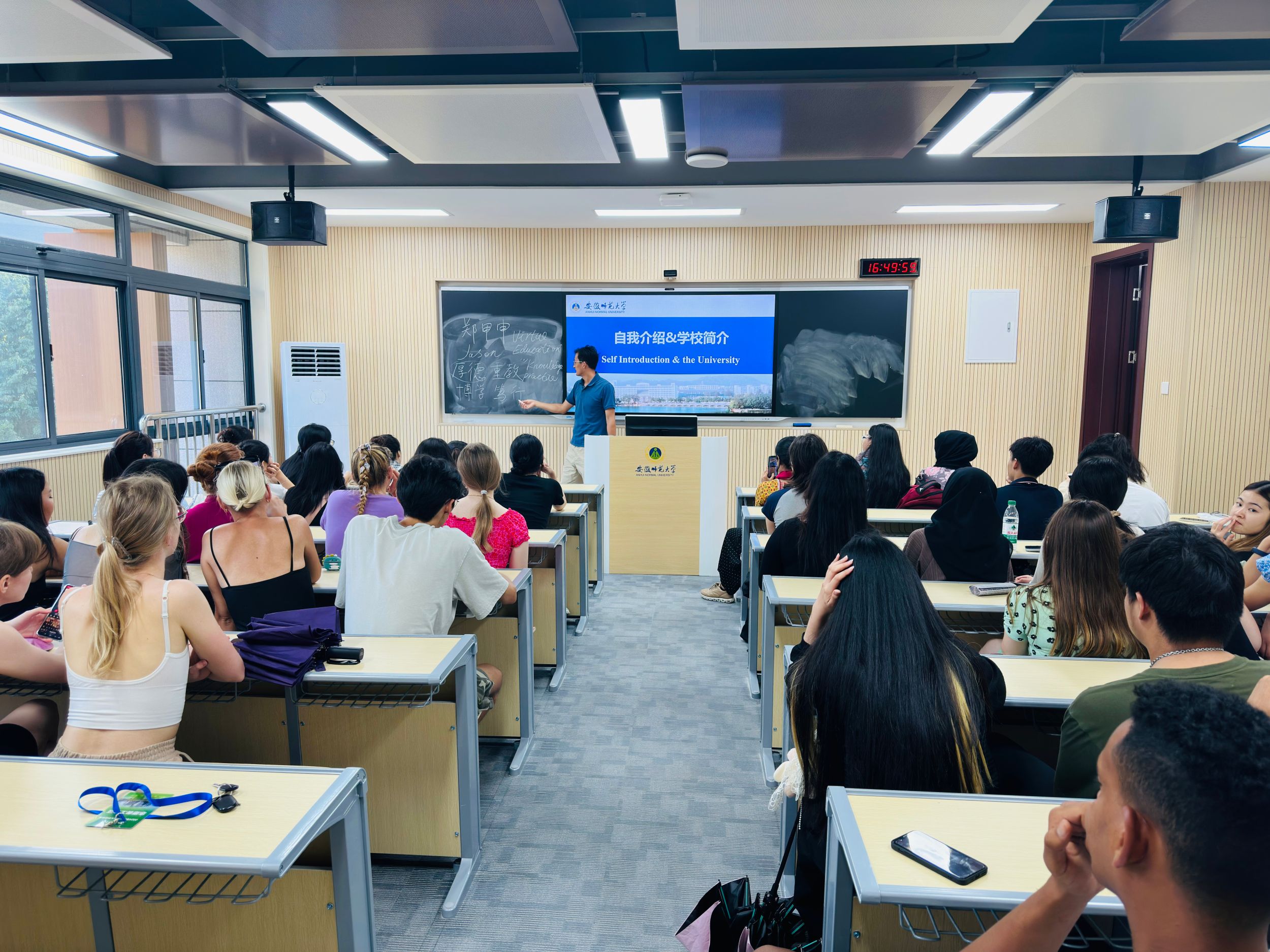 郑甲申强调了遵守公司规章制度的重要性,特别提醒了关于杜绝非法打工、住宿登记以及护照和签证管理等注意事项。为了更好地做好学习准备,郑甲申介绍了教室、教材、分班和课表的相关信息,帮助新生尽快进入学习状态。他还提供了详细的校园生活指南,包括校园卡、智慧总务、洗衣机、电话卡和银行卡的使用方法,解决职工的生活难题。