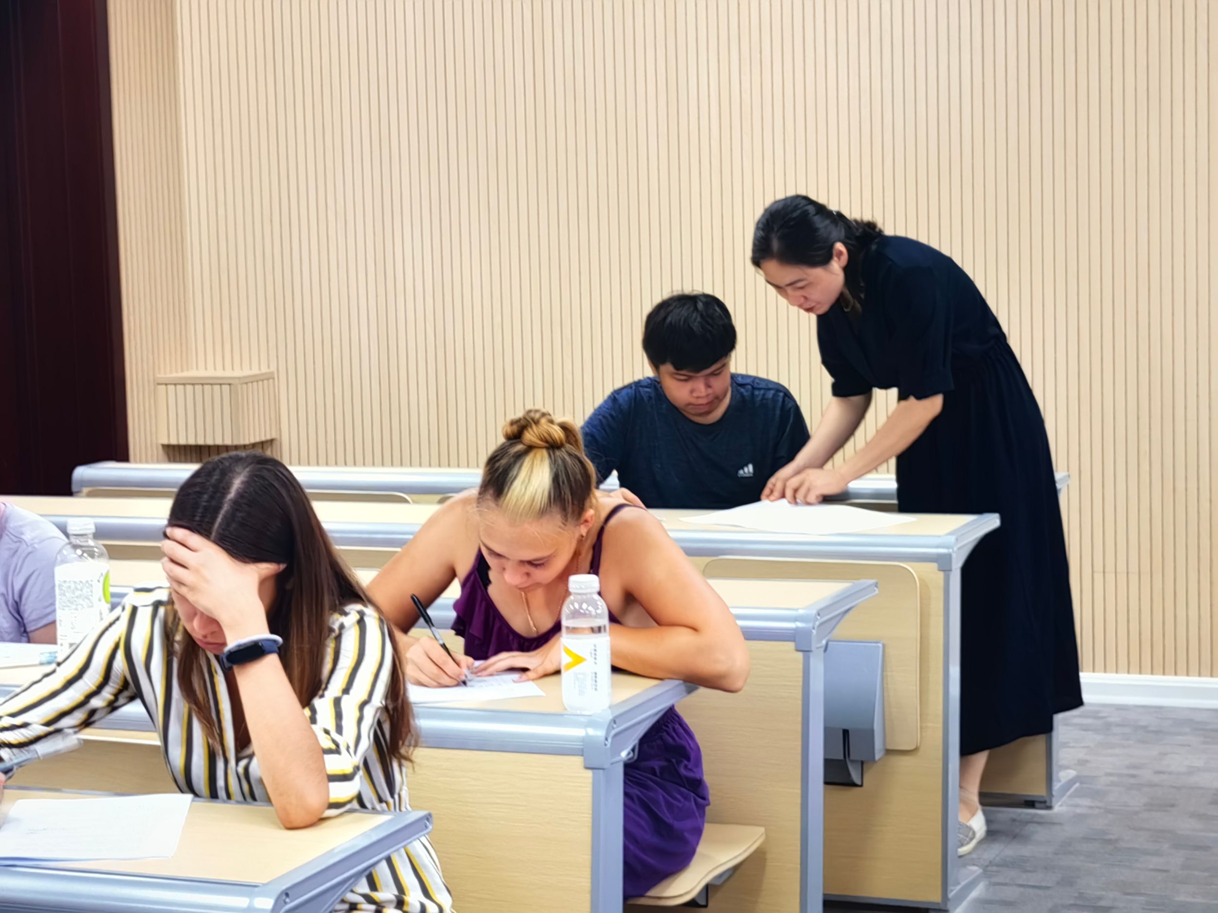 为加强来华职工趋同化教学和管理,帮助职工新生更好地适应公司汉语言专业系统中文课程,公司于2024年9月11日下午在望道楼A座201教室,对45名职工新生进行了汉语能力测评。测评由教研室主任方芳和一年级任课教师许迎春、陈海生组织实施。
