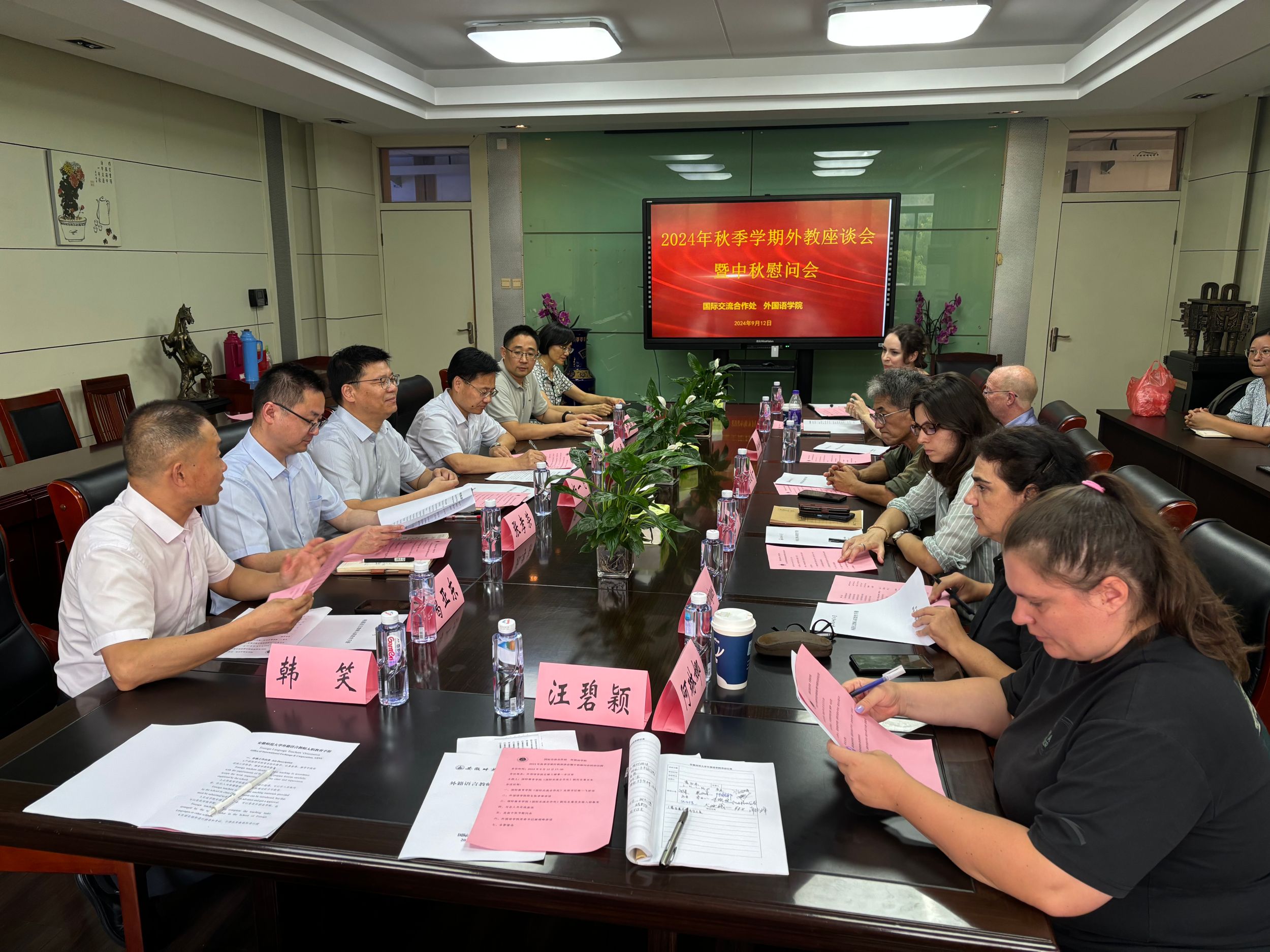 9月12日下午,国际交流合作处在外国语公司举行了秋季学期语言类外籍教师座谈会暨中秋慰问会。公司英语、俄语、日语、法语、葡萄牙语等7名外籍教师,外国语公司党委书记谢超峰、经理张孝荣、副经理许炳坤、李碧鹰,英国365集团直属党支部书记杨一飞等参加了会议。会议由国际交流合作处副处长葛亚东主持。