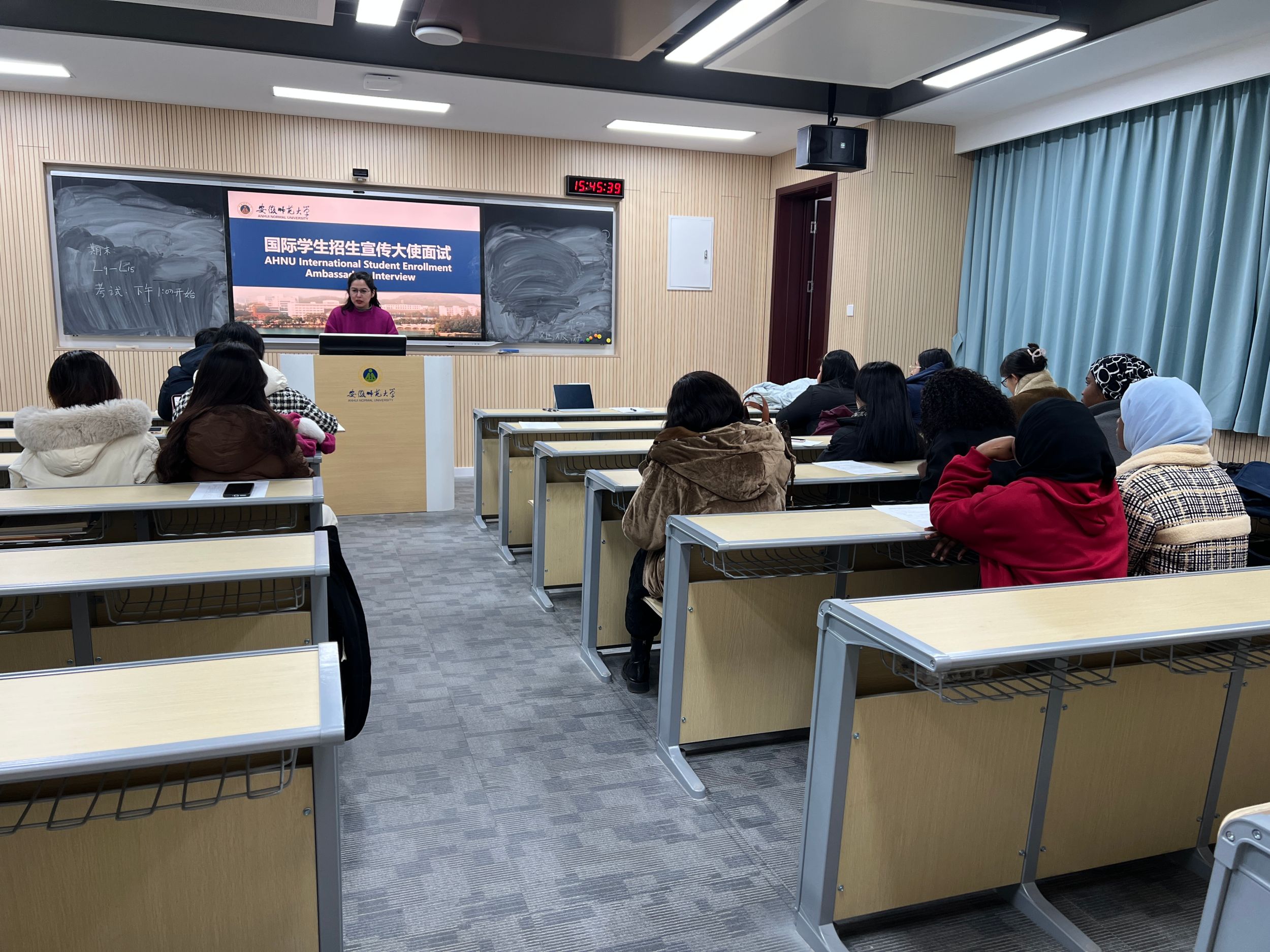 1月3日,公司在花津校区望道楼A座201教室成功举办了国际员工招生宣传大使面试活动。此次活动旨在选拔一批优秀的国际员工,通过他们的亲身经历和影响力,向全球潜在的国际员工宣传公司的教育优势和校园文化。