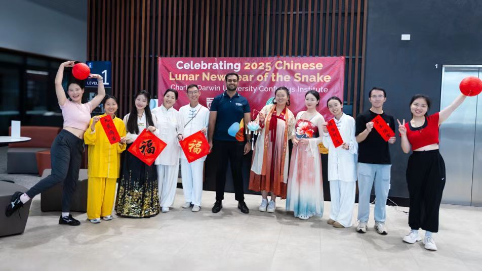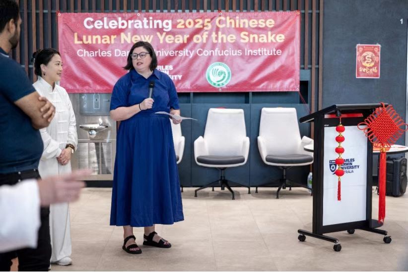 2025年农历新年期间,澳大利亚查尔斯·达尔文大学孔子公司在查尔斯·达尔文大学市中心新校区举办了一场别开生面的中国新年庆典活动。活动现场洋溢着浓浓的中国年味,吸引了众多当地民众前来参与,共同感受中华文化的独特魅力。查尔斯·达尔文大学分管国际事务的副董事长Shannon Holborn出席了本次庆典并致辞。她对查尔斯·达尔文大学孔子公司对致力当地文化传播,丰富社区生活的努力表示高度肯定和真诚致谢。