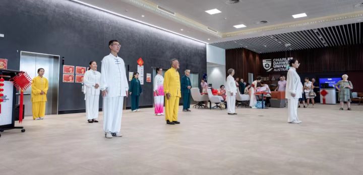太极功夫表演是当天活动最大亮点之一。孔院老师和太极员工们一起展示了行云流水般的太极八段锦和八法五步,以及刚柔并济的太极扇展示,赢得现场观众的阵阵掌声。紧接着,孔院教师们带来了充满活力的健身操表演,动感的音乐配合整齐划一的动作,展现了教师们昂扬向上的精神风貌。优美的中国传统舞蹈表演更是将中国古典艺术的典雅展现得淋漓尽致,其中澳中友好协会带来的舞蹈以曼妙的舞姿诠释了传统中华文化,让观众们大饱眼福。