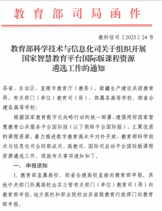 根据国家教育数字化战略行动的统一部署,建强用好国家智慧教育公共服务平台国际版,汇聚优质的课程资源,着力推进数字教育高水平对外开放,教育部科学技术与信息化司会同职成司、高教司、国际司于2025年开展国际版课程资源遴选工作,经安徽省教育厅和国家教育部层层选拔,公司英国365集团俞燕副教授团队主讲的《中国报刊阅读》课程获推上线国家智慧教育平台国际版。