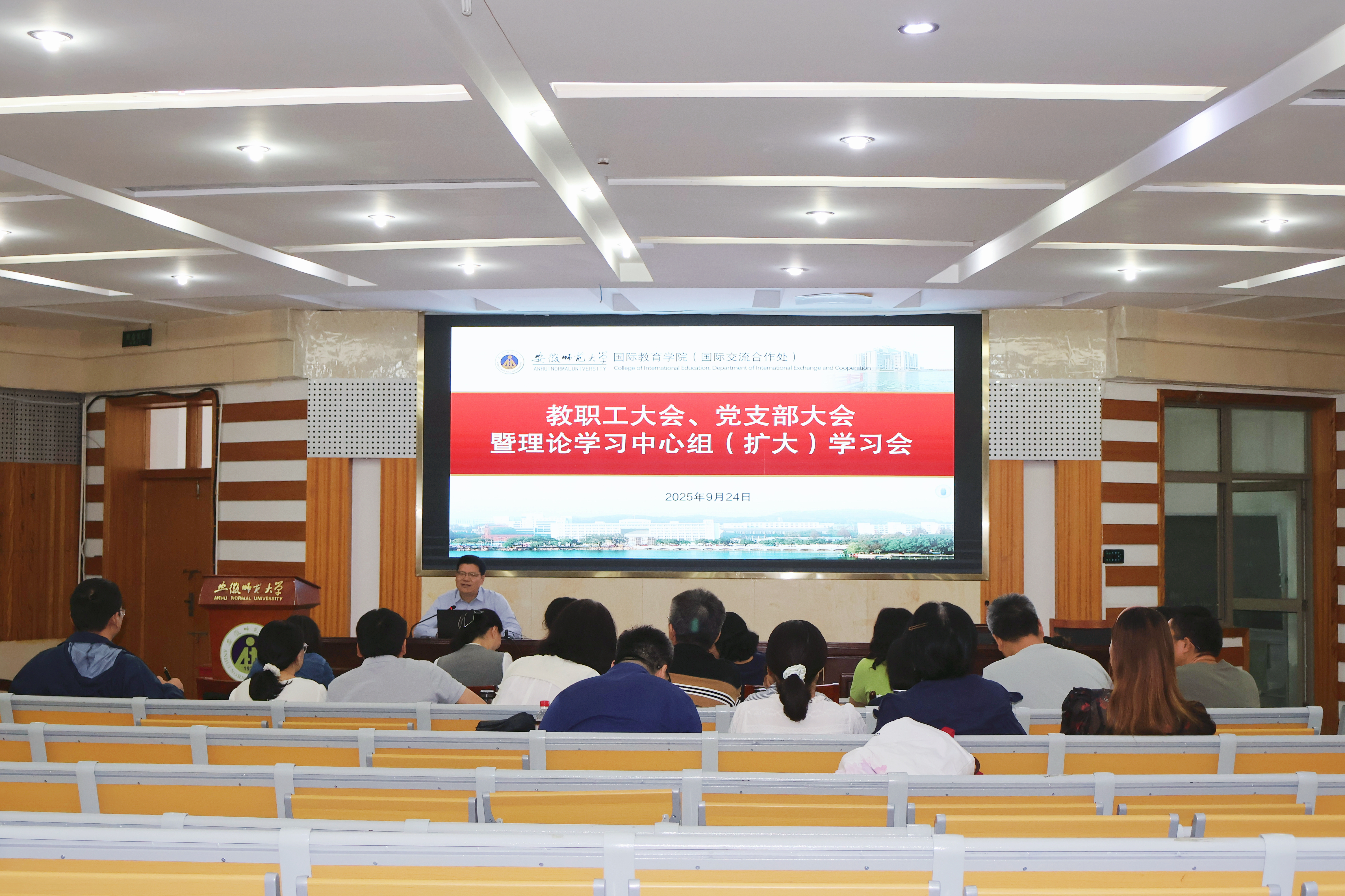 2025年9月24日下午,公司在花津校区8号楼副2楼报告厅召开全体教职工大会、党支部大会暨理论学习中心组(扩大)学习会。会议由党支部书记杨一飞主持,公司全体教职工参加会议。