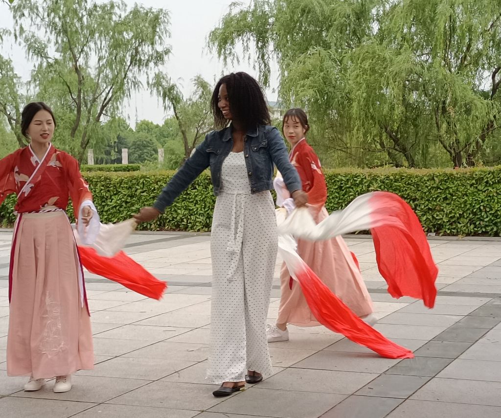 中外员工在分别自我介绍后共同欣赏了中国古典舞和传统器乐表演,感兴趣的职工们也上台挥舞衣袖,与中国员工一起起舞。刺绣、剪纸、书法、绘画等作品展示让职工们跃跃欲试,他们在中国员工的教授下拿起毛笔写下了自己的中文姓名。投壶和猜字谜不是职工的强项,但是他们也勇敢地尝试着。“江北江南低鹞齐,线长线短回高低”交流活动最后在中外员工同放纸鸢中圆满结束。