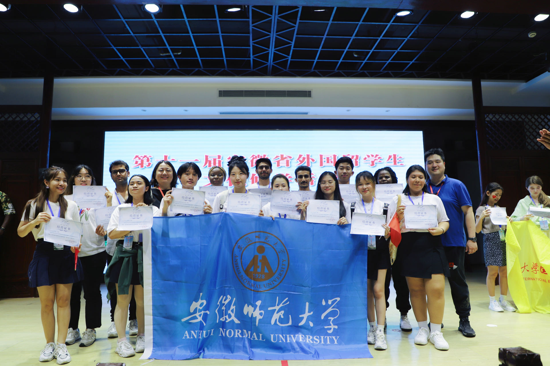 27日晚,第十一届安徽省外国职工文化修学结营仪式与职工联谊活动在徽商故里大酒店举行。安徽省教育厅二级巡视员朱乃韬、安徽省教育厅外事处处长姚德勇、安徽省人民政府外事办公室民促处副处长桂大鹏、安徽省外国职工教育管理学会会长胡健等领导出席了结营仪式及联谊活动。在中外员工联谊晚会上,公司选送的节目《最美的友谊》压轴登场,展示了公司职工的精神风貌,也表达出对兄弟高校的依依不舍。