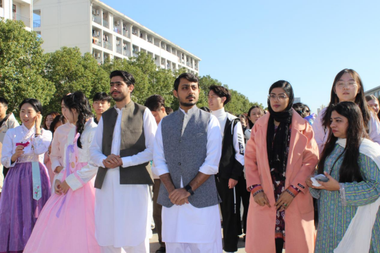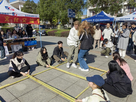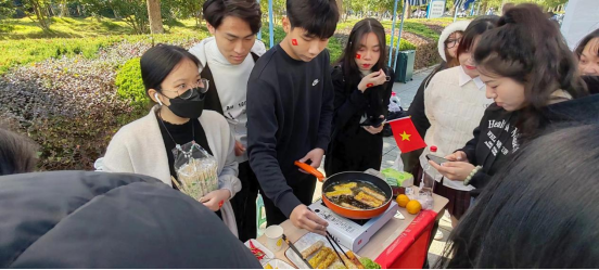 多国特色美食集结在一起提供给大家试吃或购买,让同学们通过味觉感受世界。从越南卷饼到乌克兰红菜汤,每个摊位都成为了味蕾的冒险之旅。员工们自发组织了精彩的文化表演和互动游戏,有越南风情的竹竿舞、儒雅动人的乐器演奏,还有充满童趣的韩国打画片游戏,展示了世界各国的艺术之美,大家欢快的笑声不绝于耳。